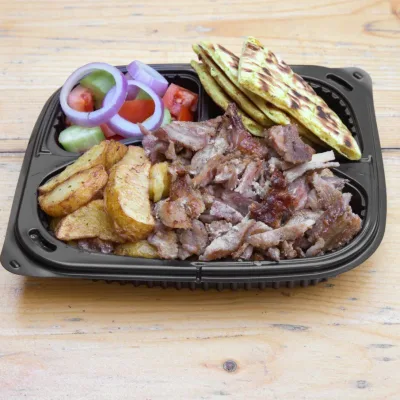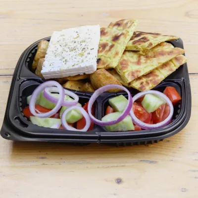 (гръцка салата, гирос пиле увит, гирос свинско увит, порция пържени...