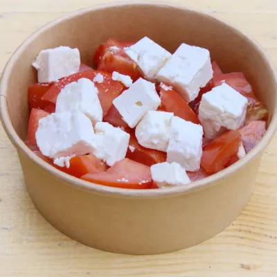 Салата домати със гръцко фета сирене, зехтин, риган, сол (400)г.